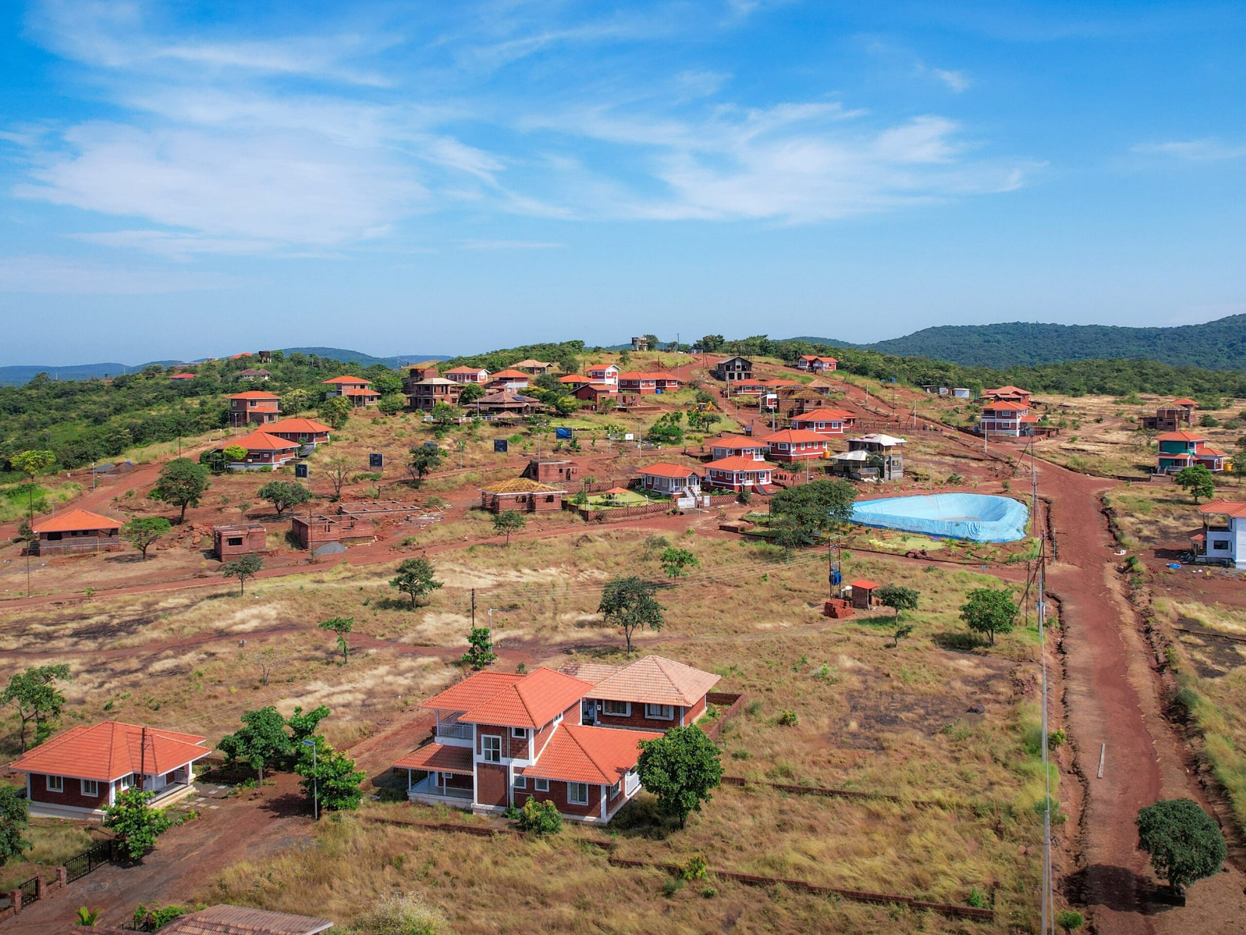 Every plot offers the freedom to design your dream bungalow, seamlessly blending traditional Konkani aesthetics with modern luxuries. Wake up to the scent of ripe mangoes drifting through wide windows, step onto your sunlit verandah with the red earth beneath your feet, and take in the endless stretch of hills beyond. Spend vibrant afternoons under 30-year-old trees and host breezy evenings in your custom-designed home, where every moment feels both timeless and personal.